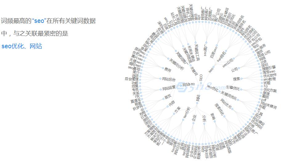 举例:如果说我们想做的主关键词是seo,那么可以统计出每天在百度上搜索和seo行业相关的词,利用百度下拉,百度相关搜索,百度指数需求图谱进行分析,可以得出流量占比最大的关键词列表: