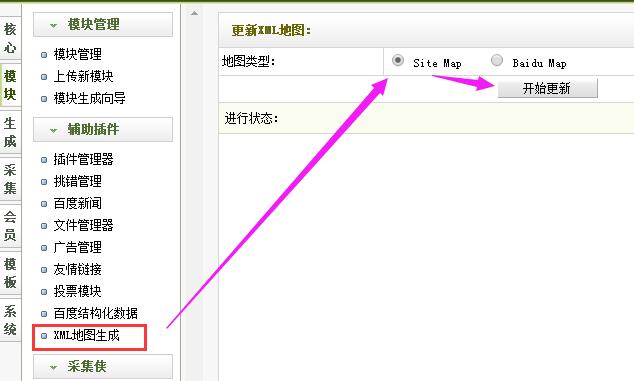 当然,还有一种简单的方法,就是把satemap的生成和上传集成为一个插件,例如织梦cms,会有一个网站地图插件,只需按照对应的编码上传安装,就可以一键生成最新的网站地图了。
